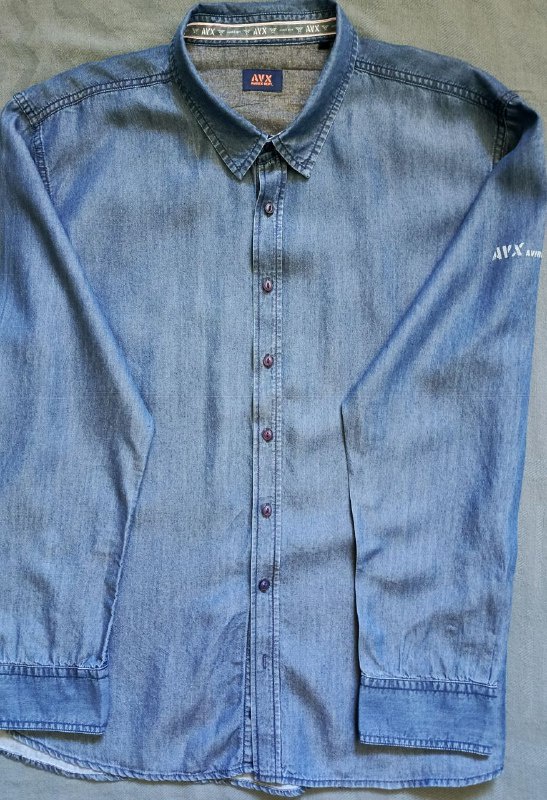 قميص جينز كلاسيكي وأنيق من ماركة AVX - Avirex Dept. الأمريكية. يتميز بقماش الدنيم عالي الجودة والتصميم الكلاسيكي الذي لا يفقد رونقه، مثالي للإطلالات الكاجوال اليومية.