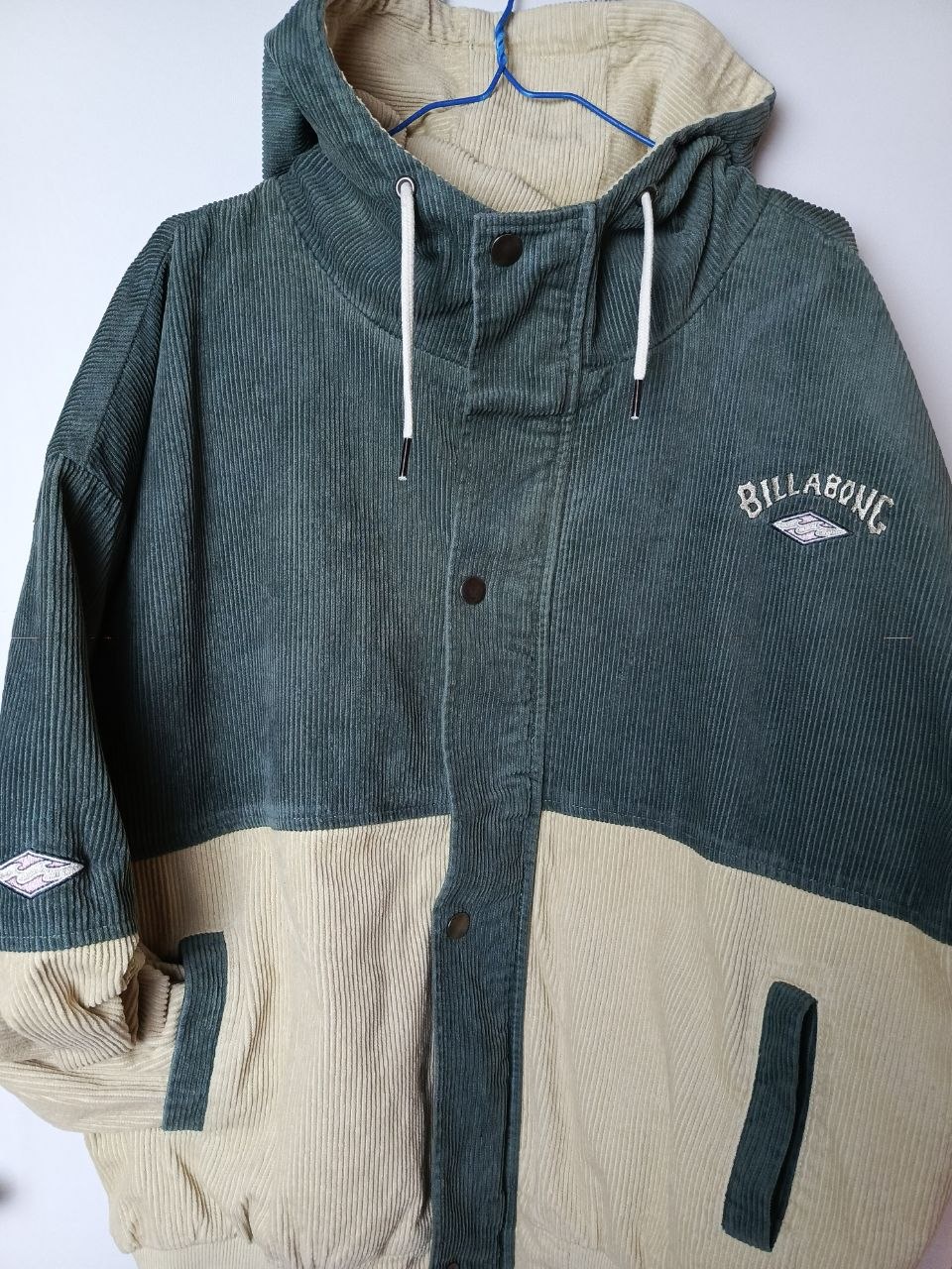 جاكيت كوردوروي من BILLABONG – أخضر داكن وأبيض كريمي | مقاس M | حالة ممتازة