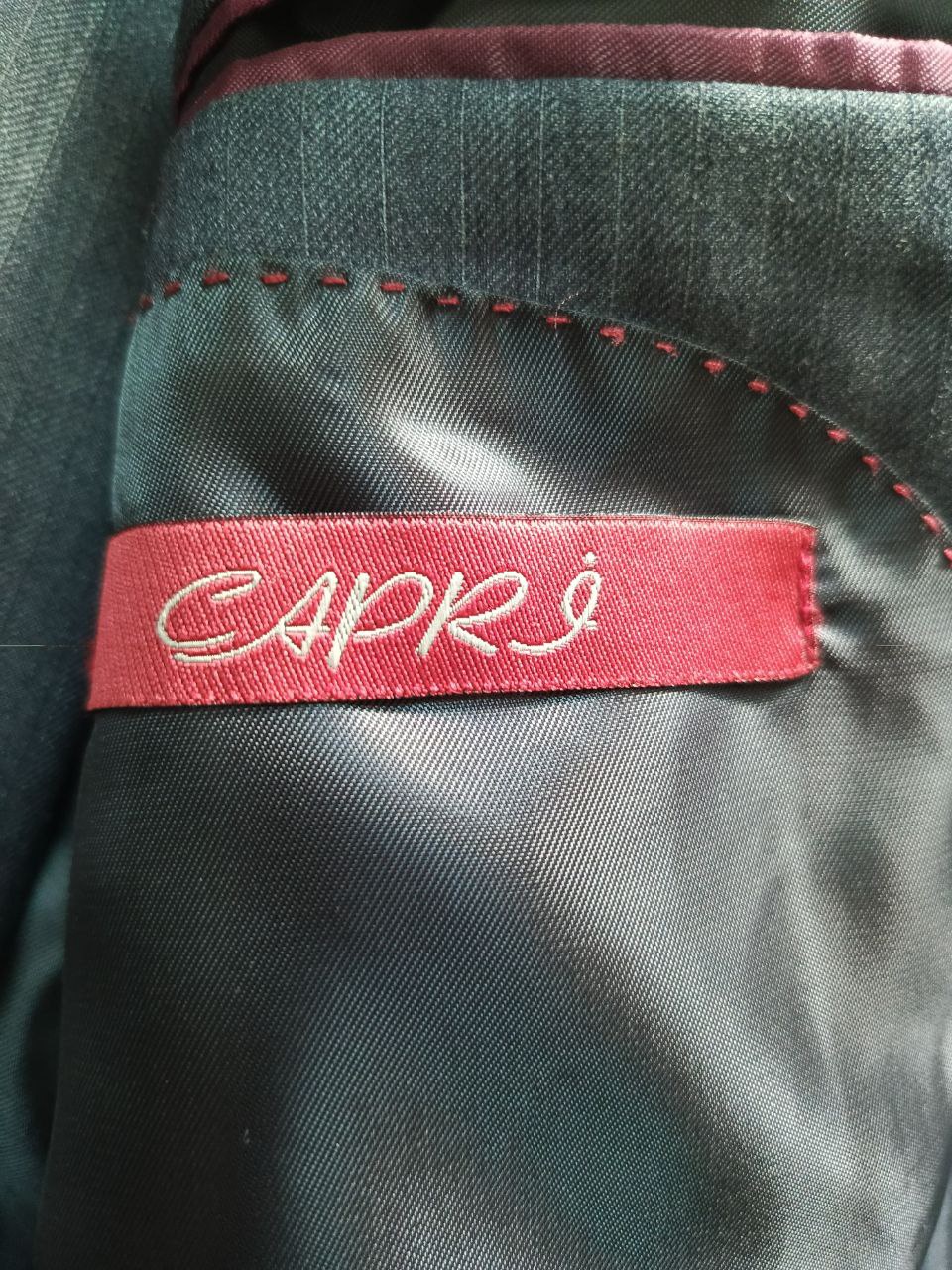 بدلة رجالي رمادية داكنة بخطوط دقيقة من Capri – مقاس 50 | حالة ممتازة