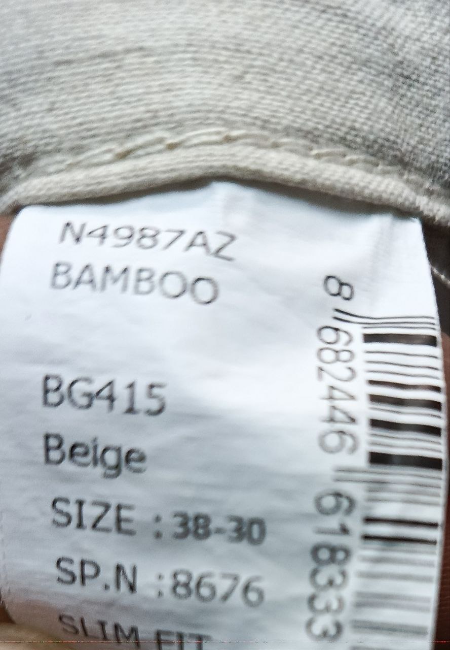 بنطال رجالي أنيق من علامة DeFacto — لون بيج فاتح، خامة BAMBOO (خيزران + قطن)، قصّة Slim Fit مريحة وعصرية: