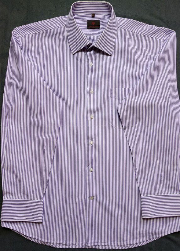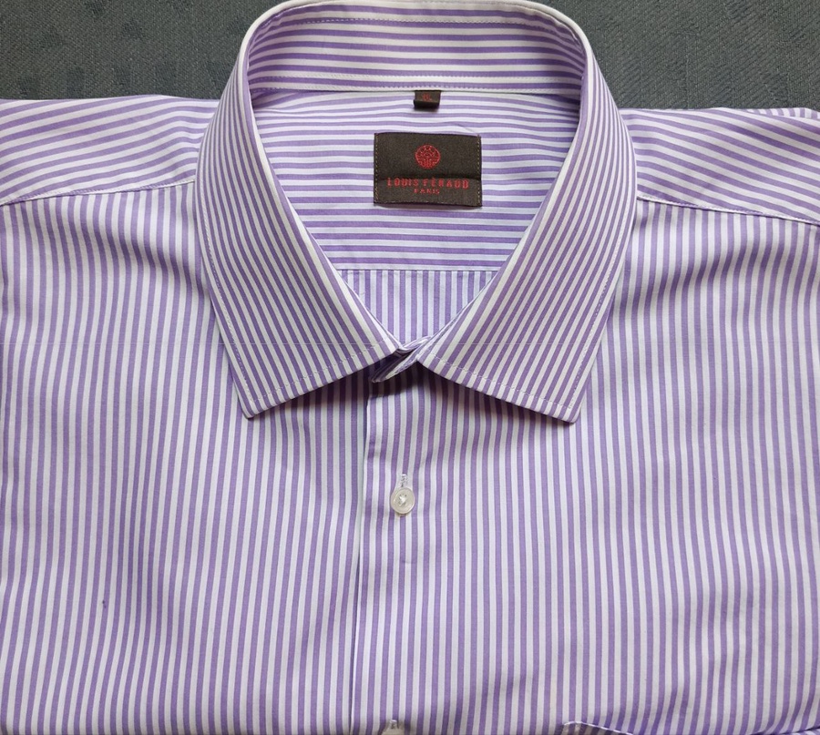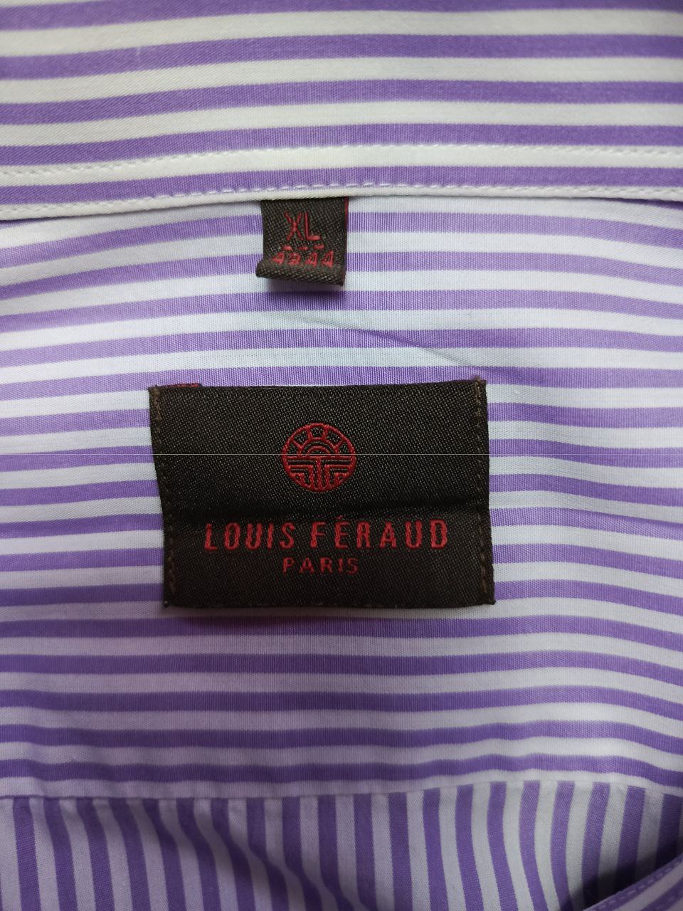 قميص لويس فيرو (Louis Féraud) مخطط بنفسجي وأبيض - مقاس XL - أكمام طويلة