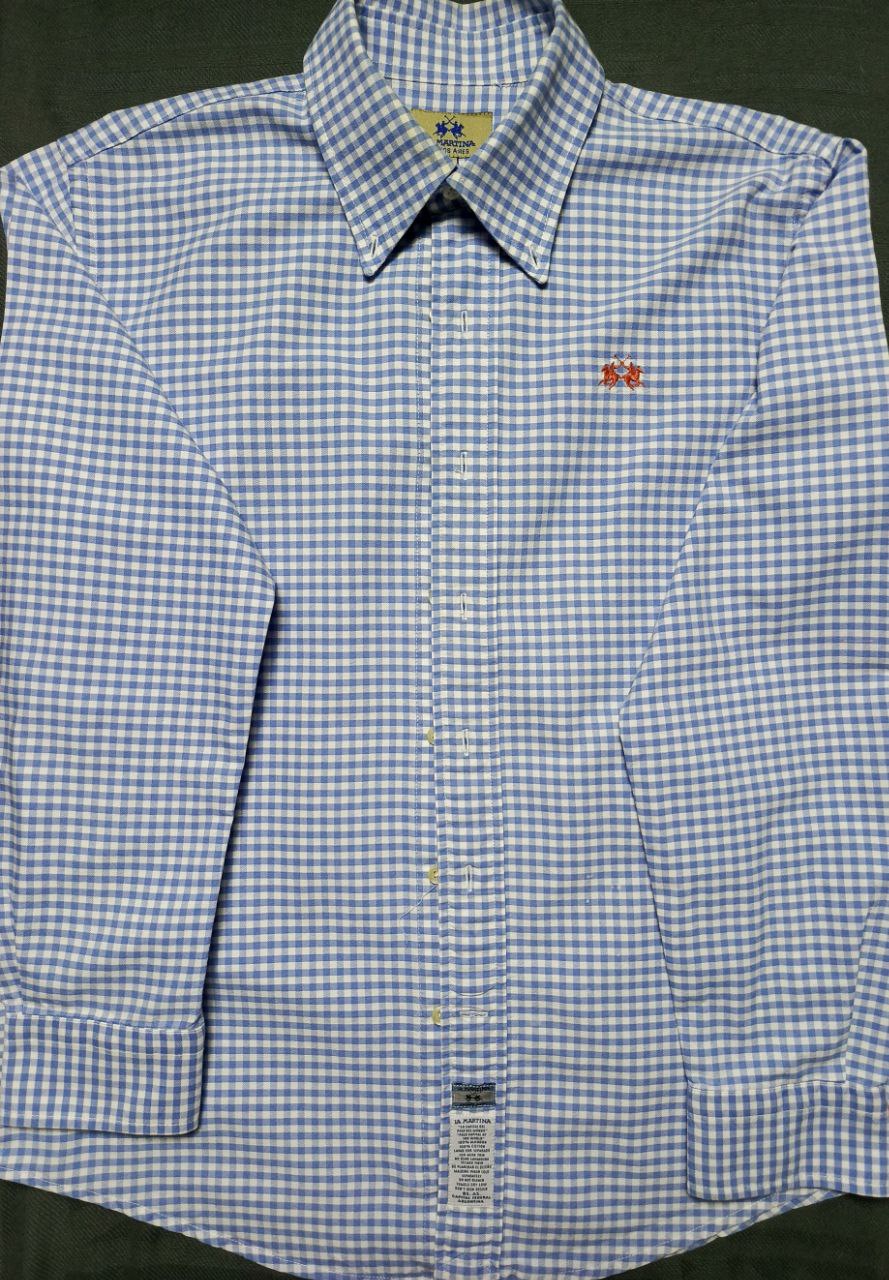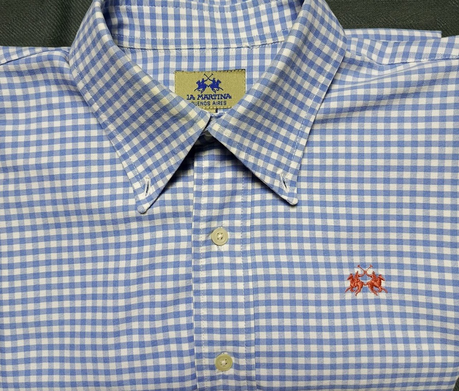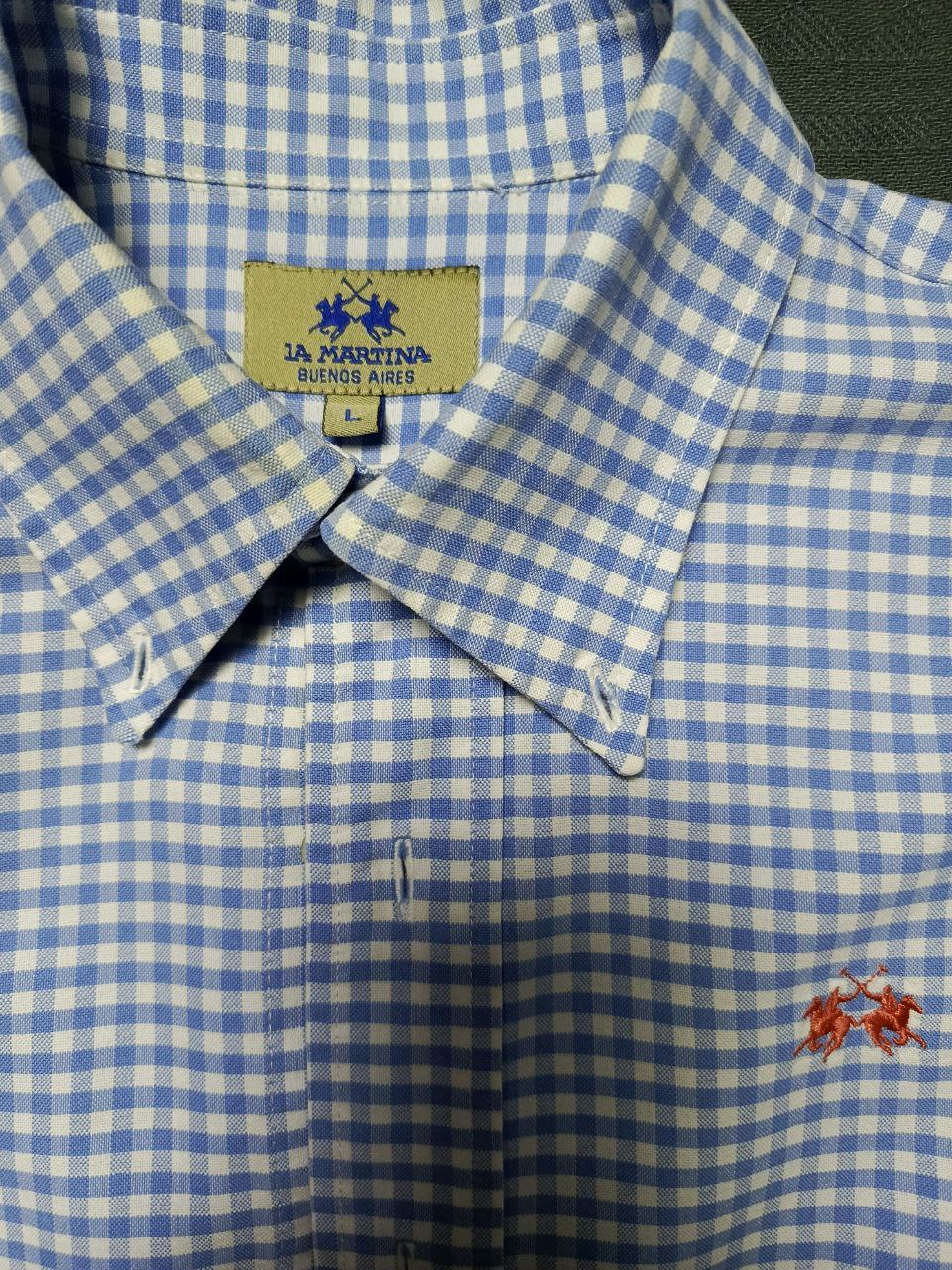 قميص رجالي أزرق و أبيض بمربعات من La Martina – مقاس L | حالة ممتازة