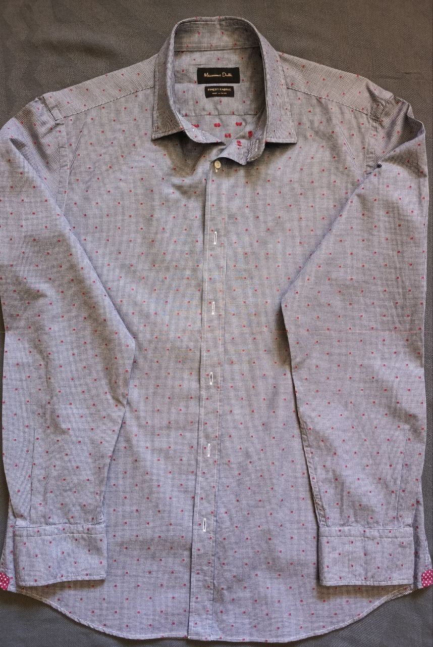 تميز بأناقتك مع هذا القميص الفاخر من ماركة Massimo Dutti العالمية. يتميز بتصميمه الأنيق بنقاط صغيرة وقماش عالي الجودة، مثالي للمناسبات الرسمية والعمل.