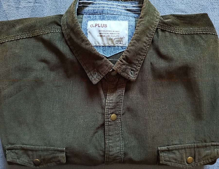 🔥 عرض خاص: قميص O.PLUS كوردروي (مخمل) أصلي - مقاس XL - بـ 3 دينار فقط! 🔥