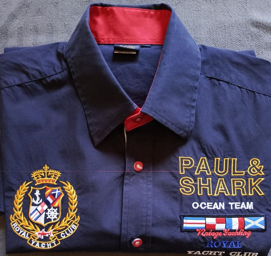 للبيع قميص رجالي فاخر وقصير الأكمام من ماركة Paul & Shark الإيطالية العريقة.