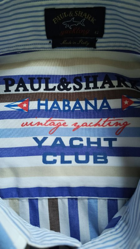 • تسمية داخلية فريدة: “PAUL & SHARK — HABANA — vintage yachting — YACHT CLUB” مع رموز علم كوبا
