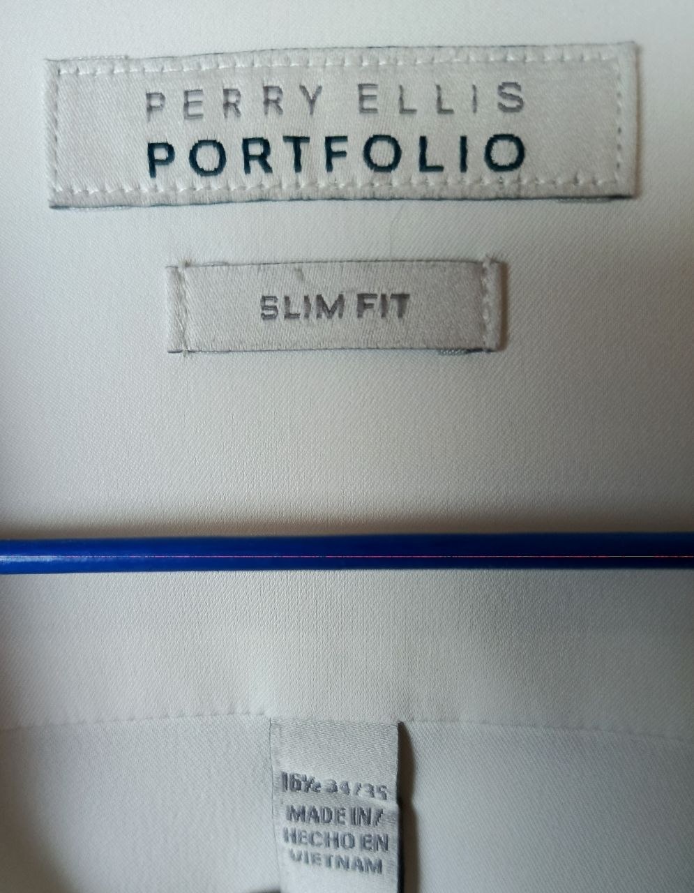 قميص رجالي أبيض من Perry Ellis Portfolio – مقاس M | حالة ممتازة