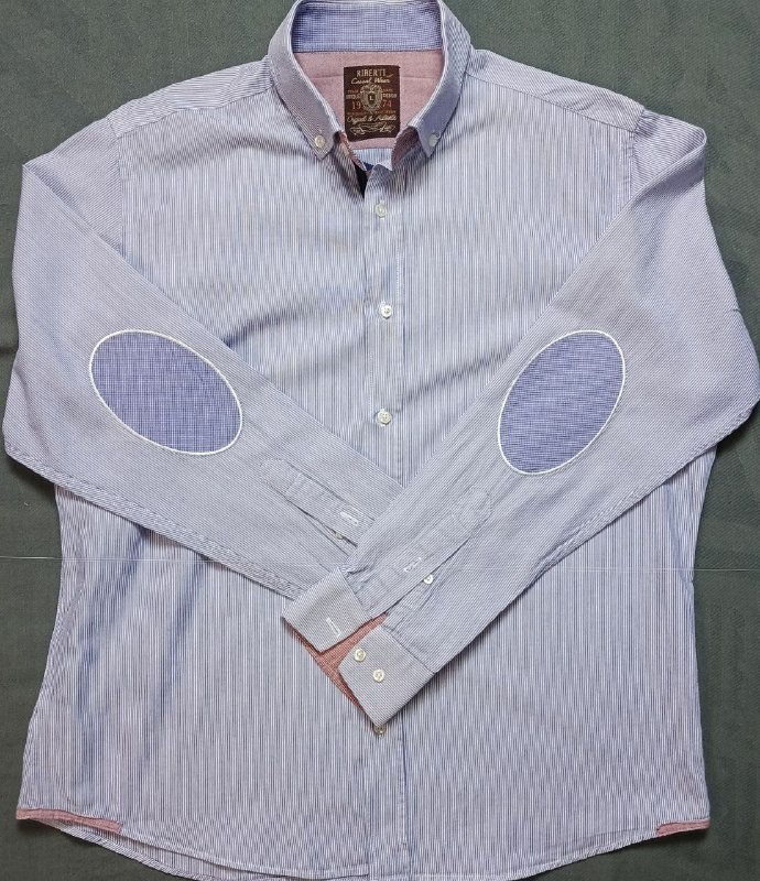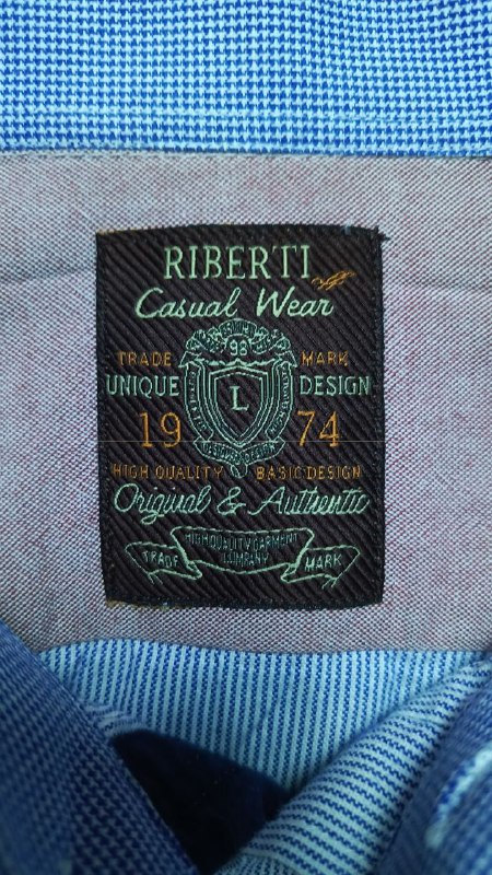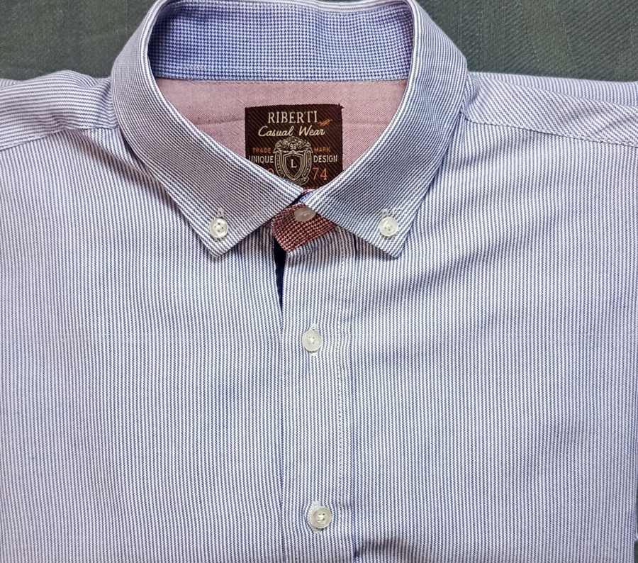 قميص رجالي من Riberti — مقاس XS فعلي (مع خطأ في العلامة: مكتوب L) — 5 دنانير فقط! (بدلًا من 10 دنانير)