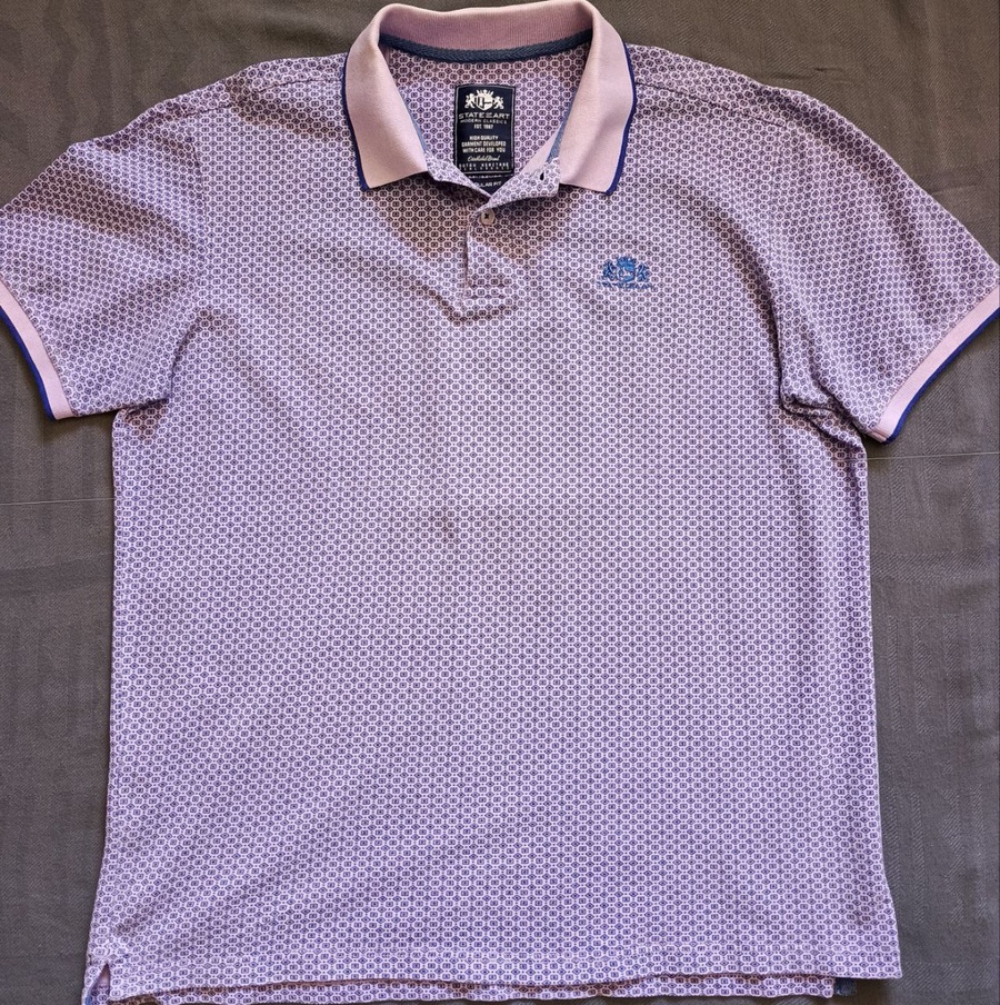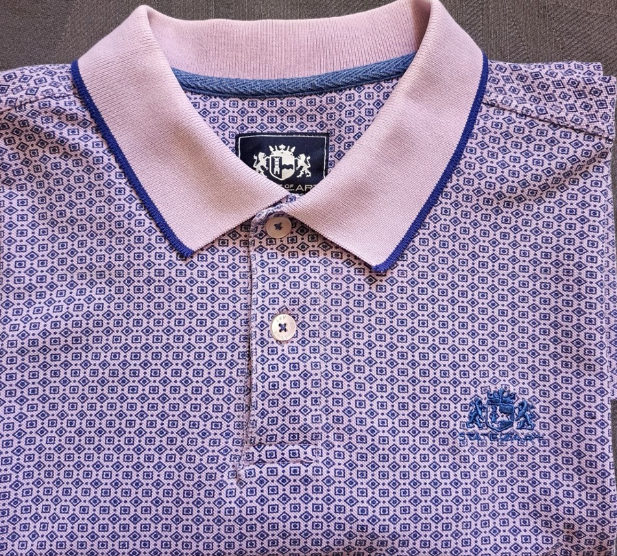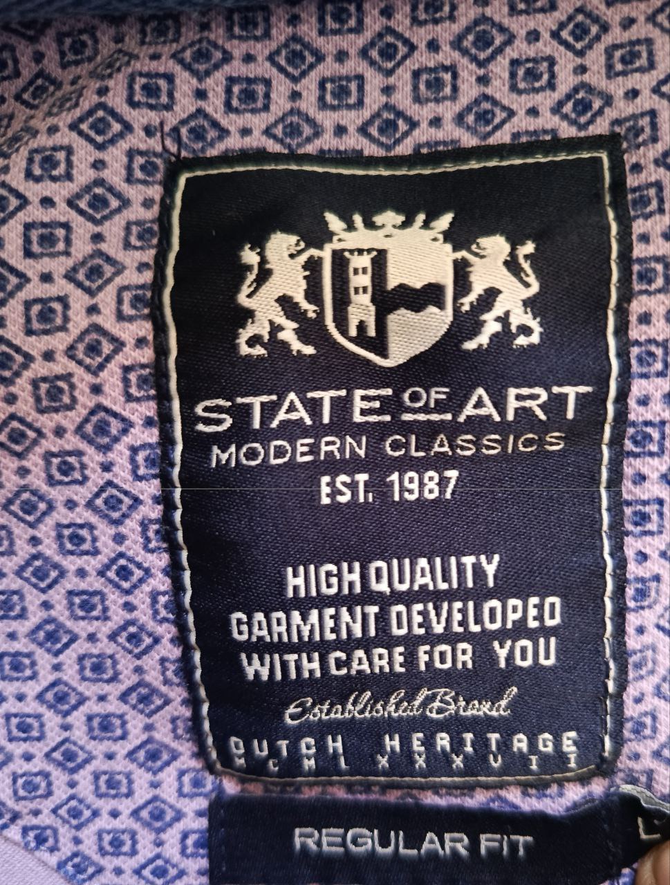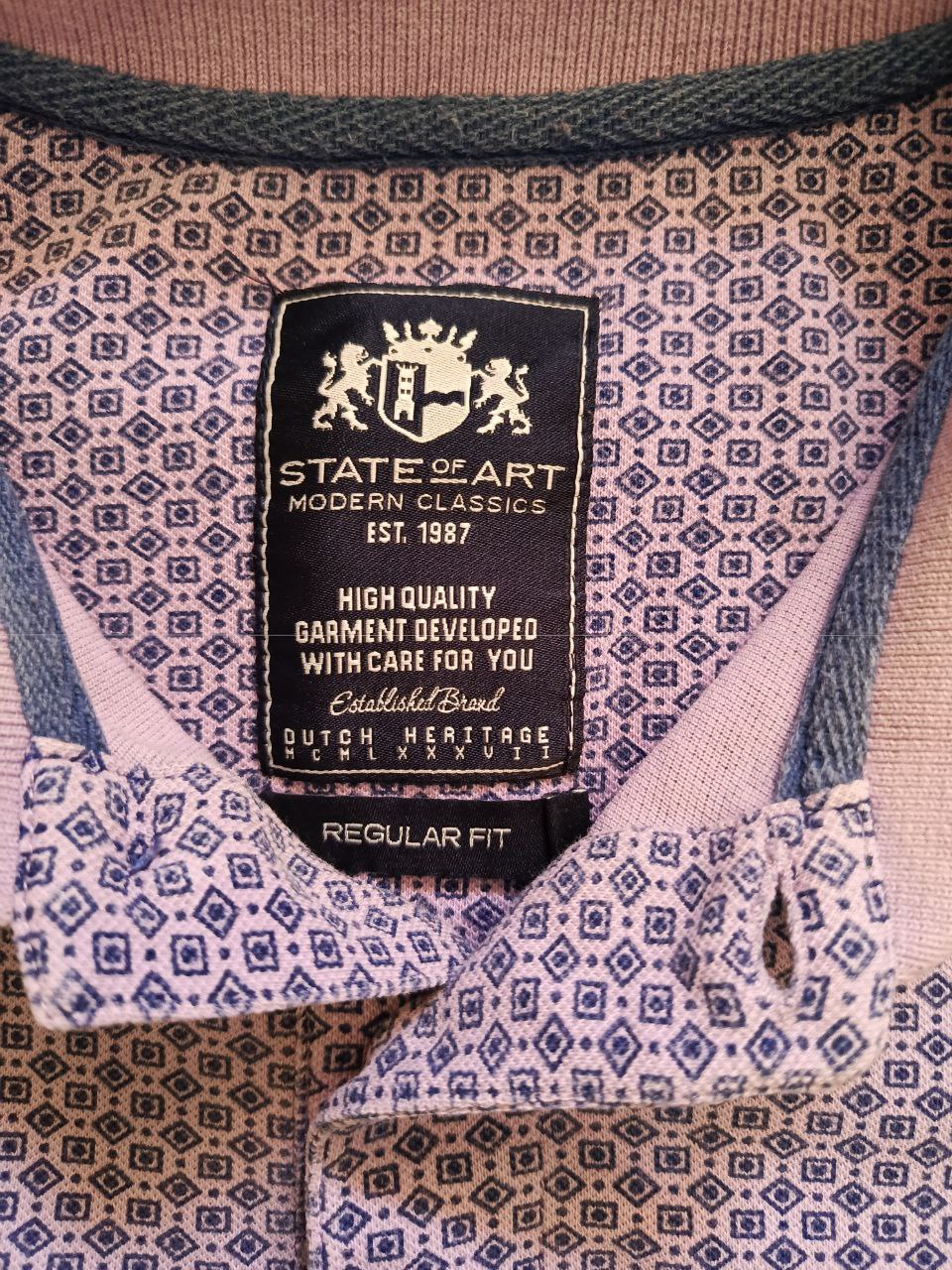 تميز بأناقتك مع هذا البولو الفاخر من ماركة State of Art الهولندية العالمية. يتميز بتصميمه الأنيق بنمط هندسي مميز وألوان جذابة، مثالي للإطلالات الكاجوال الأنيقة.