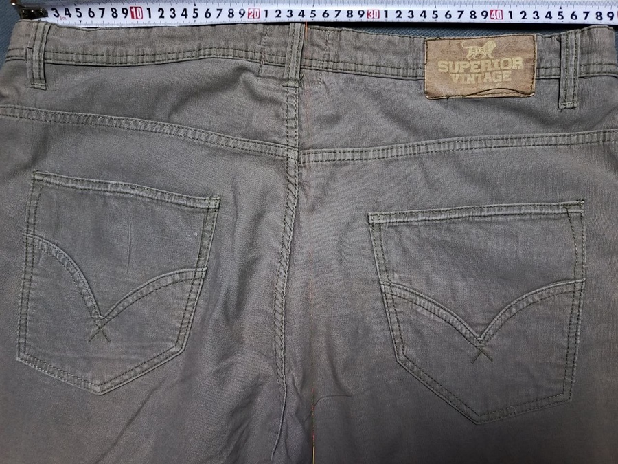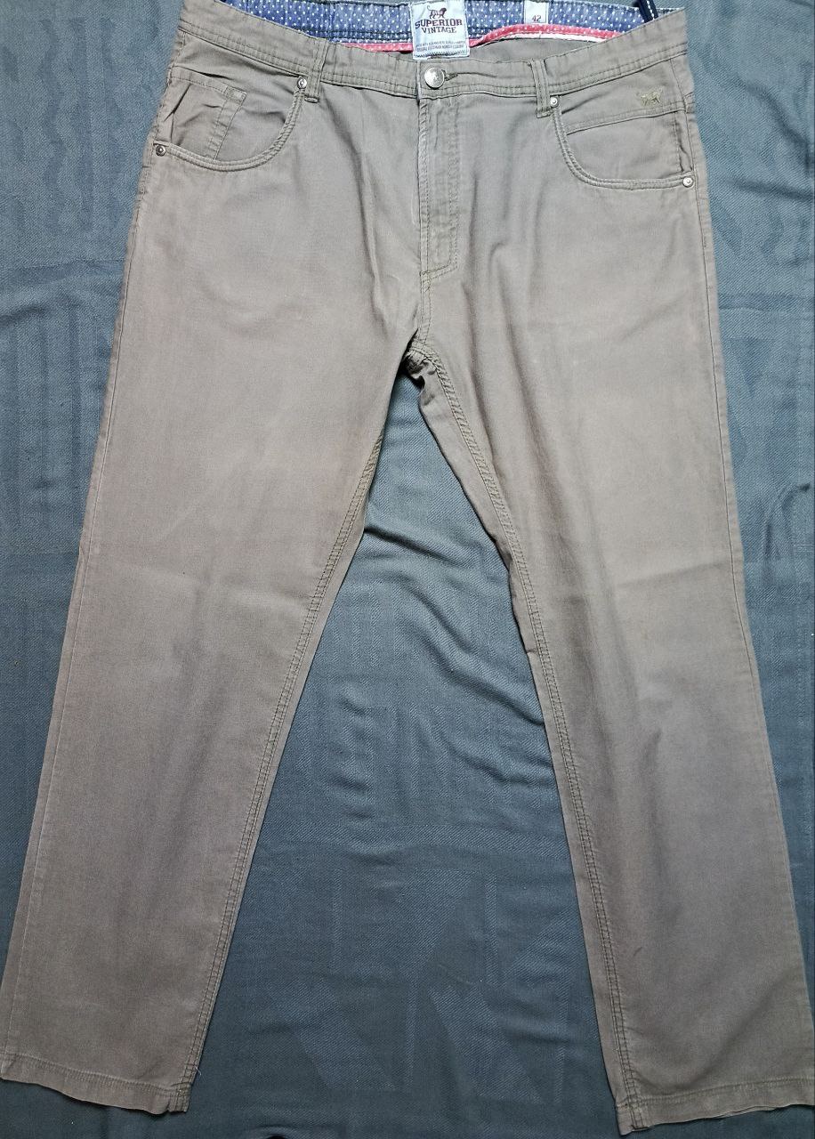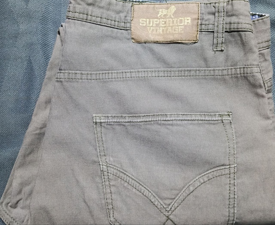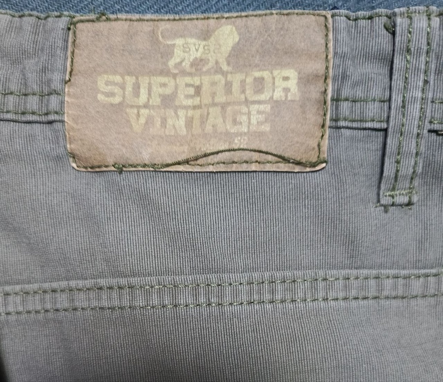 بنطلون كاجوال أنيق من علامة Superior Vintage — تصميم فِينتاج عصري، لون رمادي خفيف، مع تفاصيل خياطة دقيقة وشعار أسد فريد.
