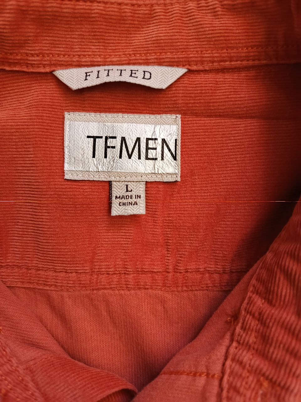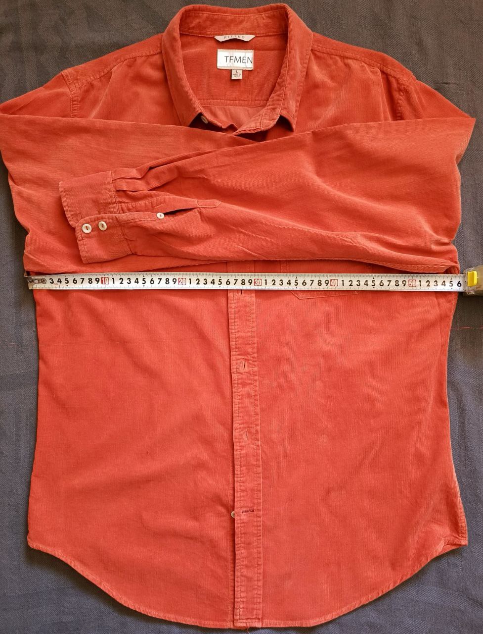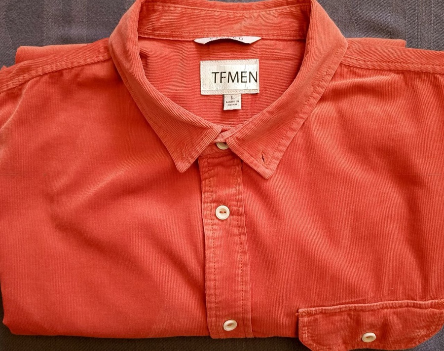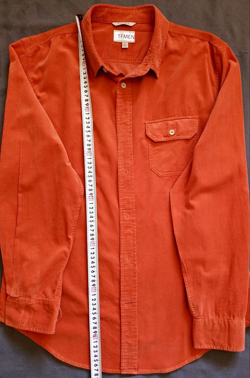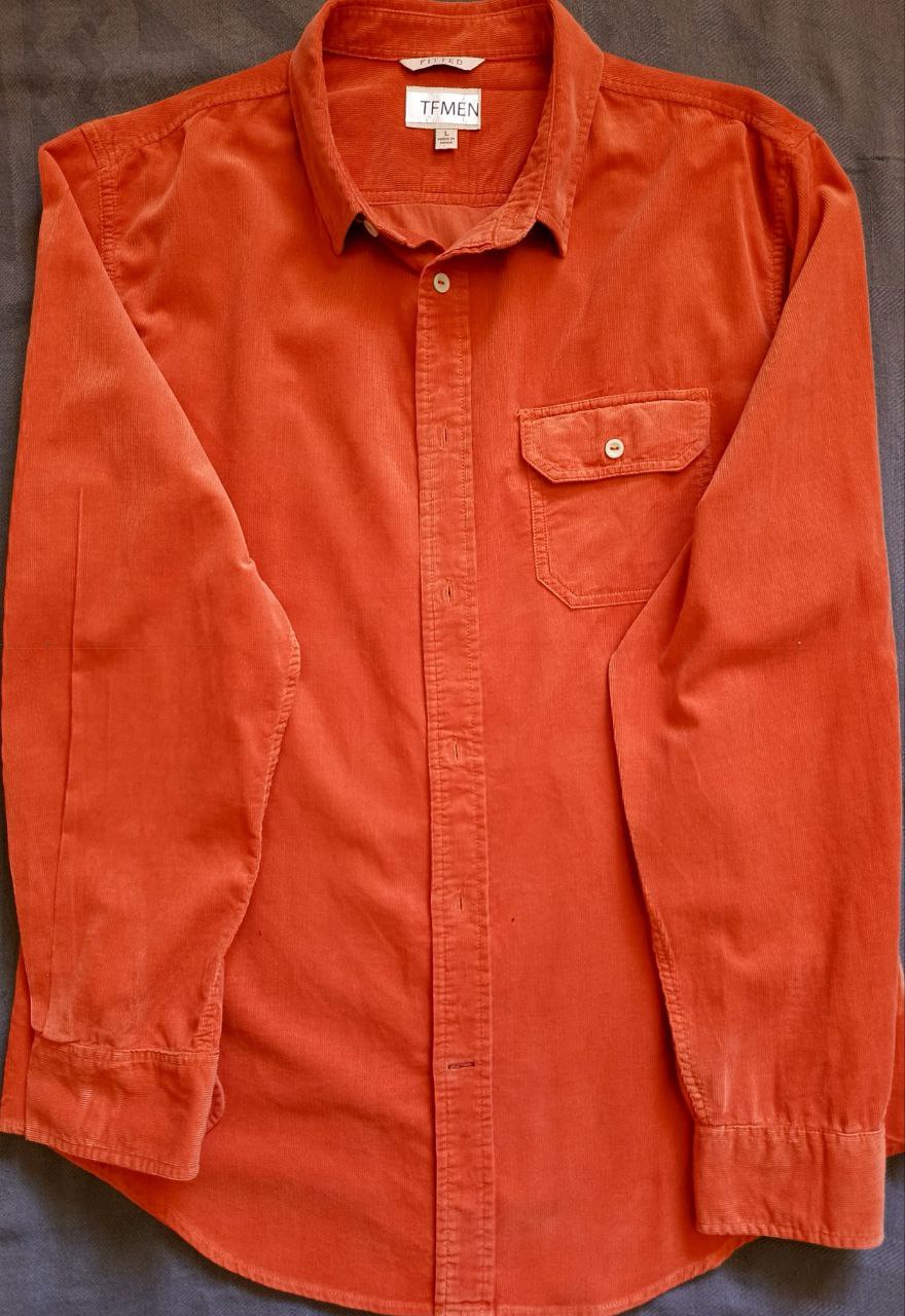 قميص TFMEN برتقالي أنيق من المخمل (Corduroy) - مقاس L - قصة Fitted