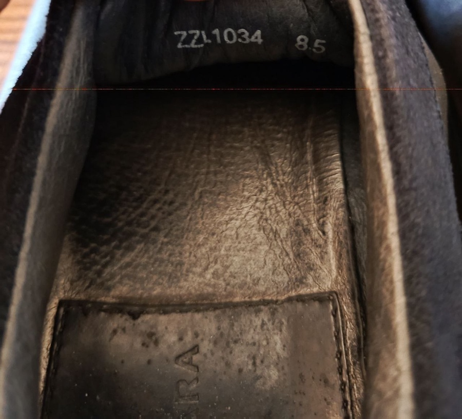 التصميم: جلد أسود فاخر مع تفاصيل من الجلد السويدي (Suede) على الكعب واللسان، تصميم كلاسيكي بسيط وأنيق، نعل أسود متين مع شعار Z المميز.
