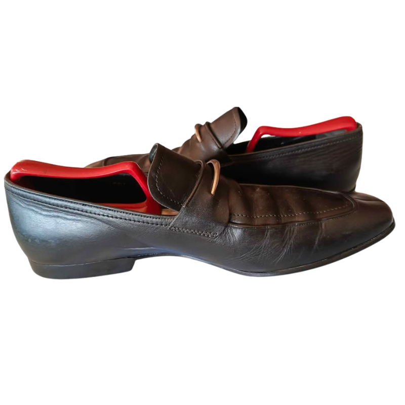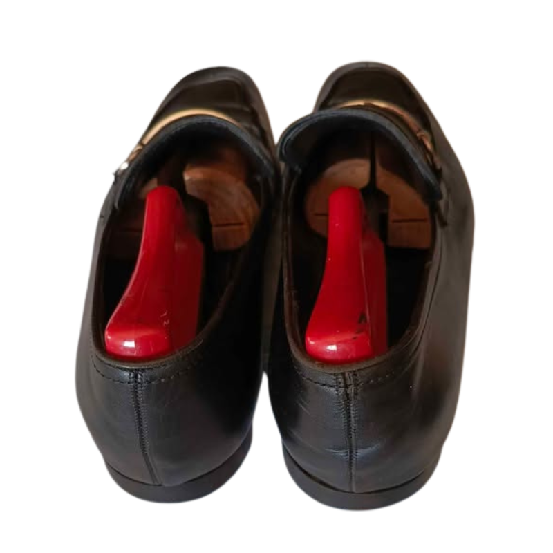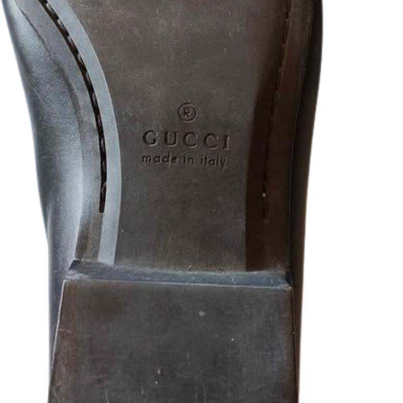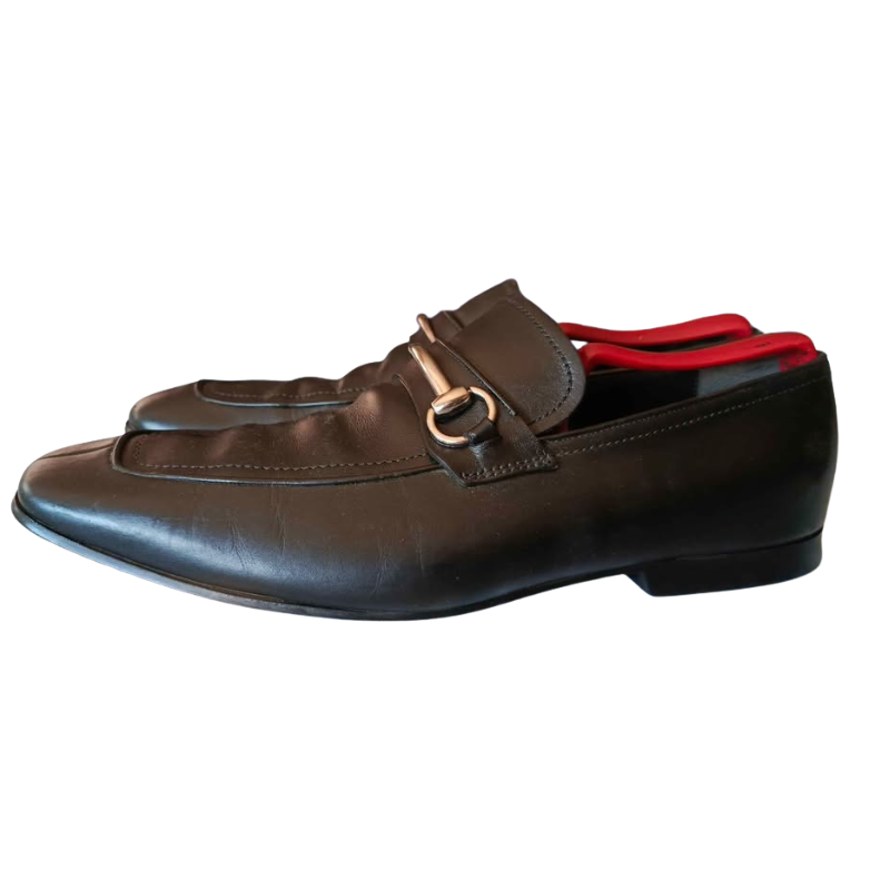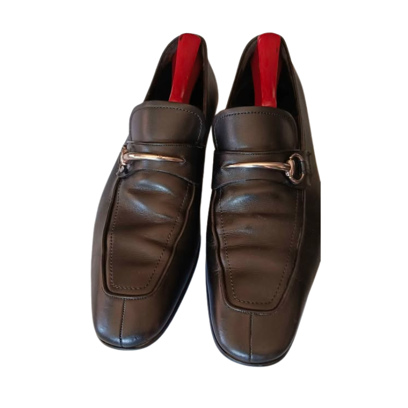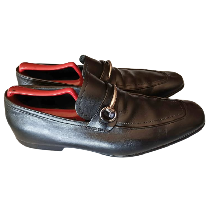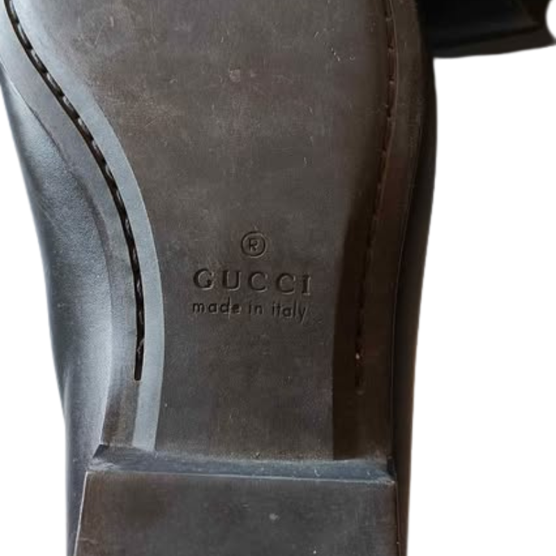 حذاء رجالي أصلي من Gucci باللون الأسود، مقاس 8.5 US Narrow، بحالة مستعملة تشبه الجديدة، موديل فاخر لمحبي الأحذية الكلاسيكية الأنيقة.