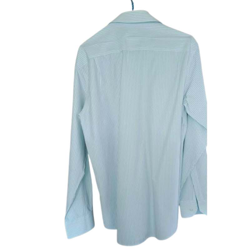 قميص رجالي رسمي ستايل أوروبي بلون أزرق فاتح، مقاس Medium وحالة تشبه الجديدة (9/10)، مناسب للدوام والمناسبات الرسمية البسيطة.