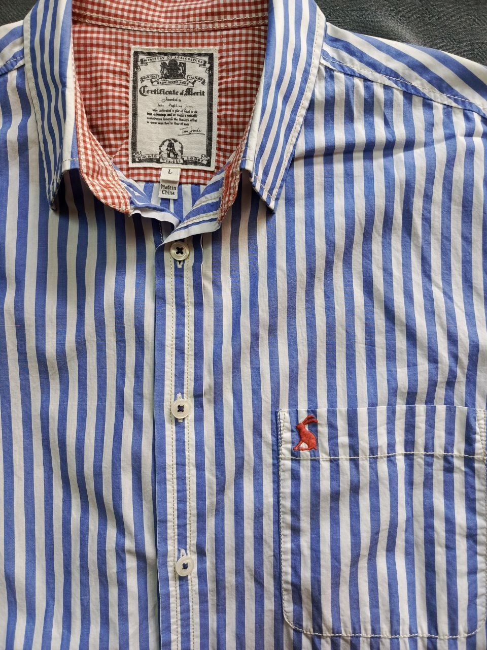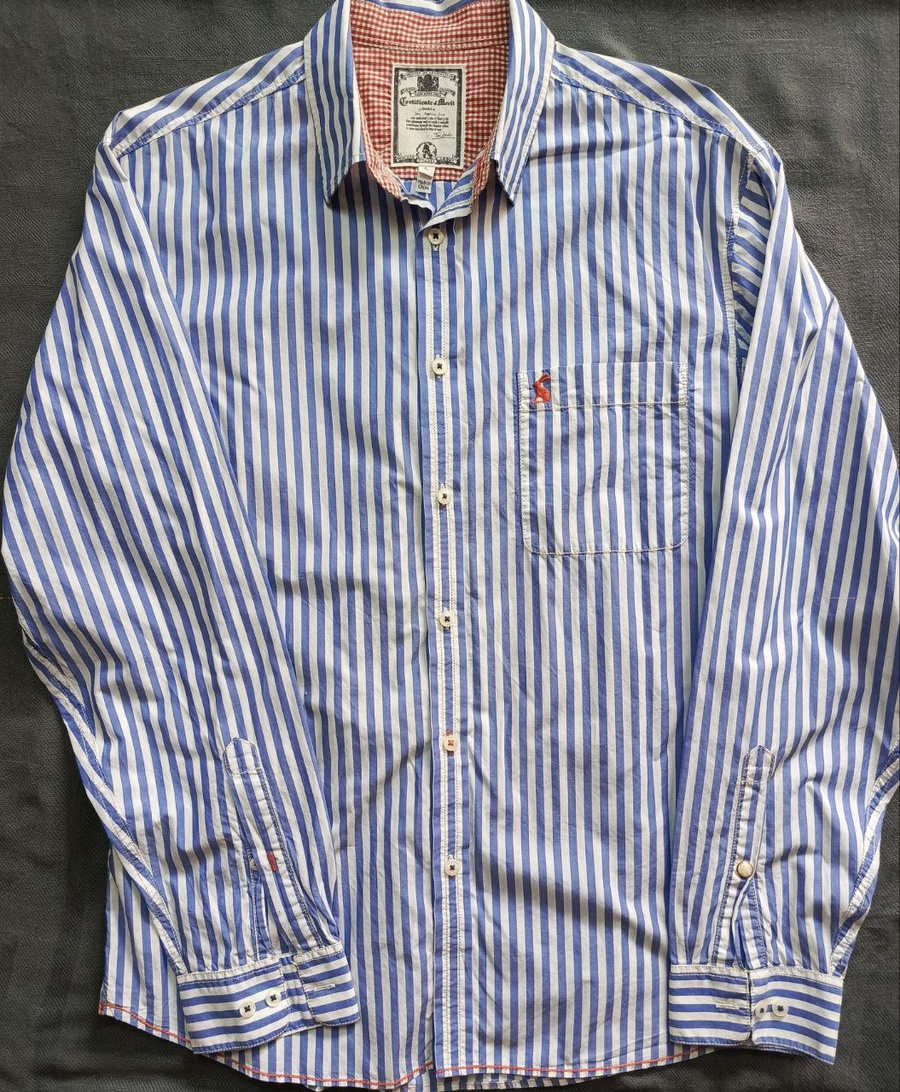 قميص رجالي أزرق بخطوط بيضاء – مقاس L | حالة ممتازة