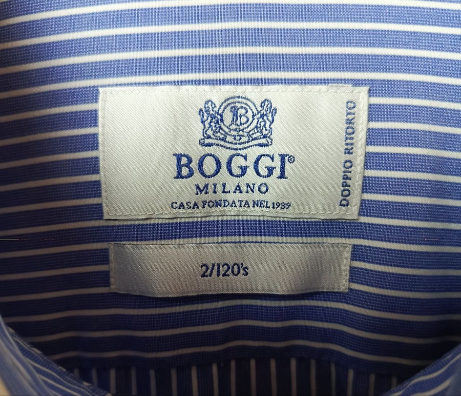 قميص رجالي أزرق بخطوط بيضاء من BOGGI MILANO – مقاس 40 | حالة ممتازة