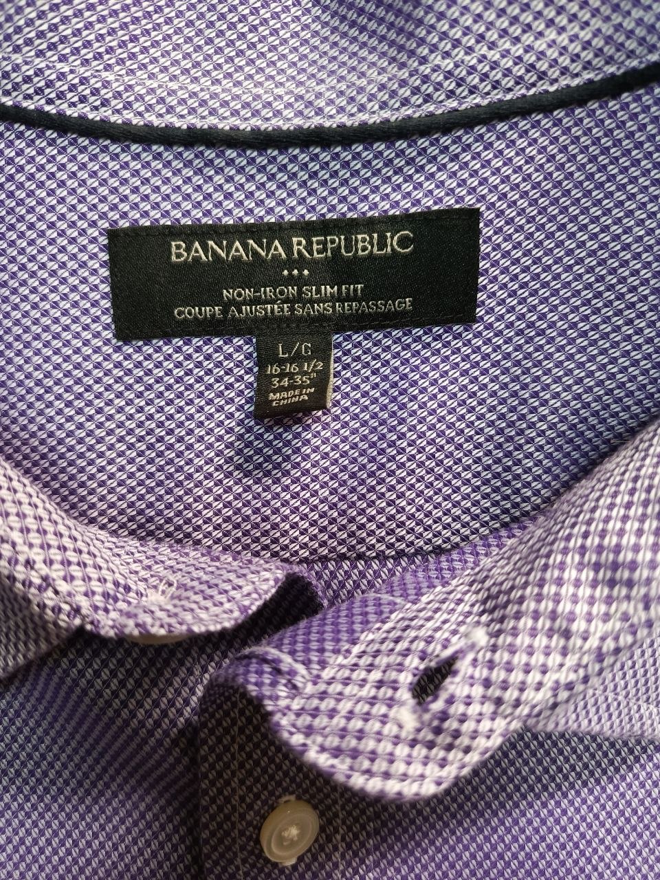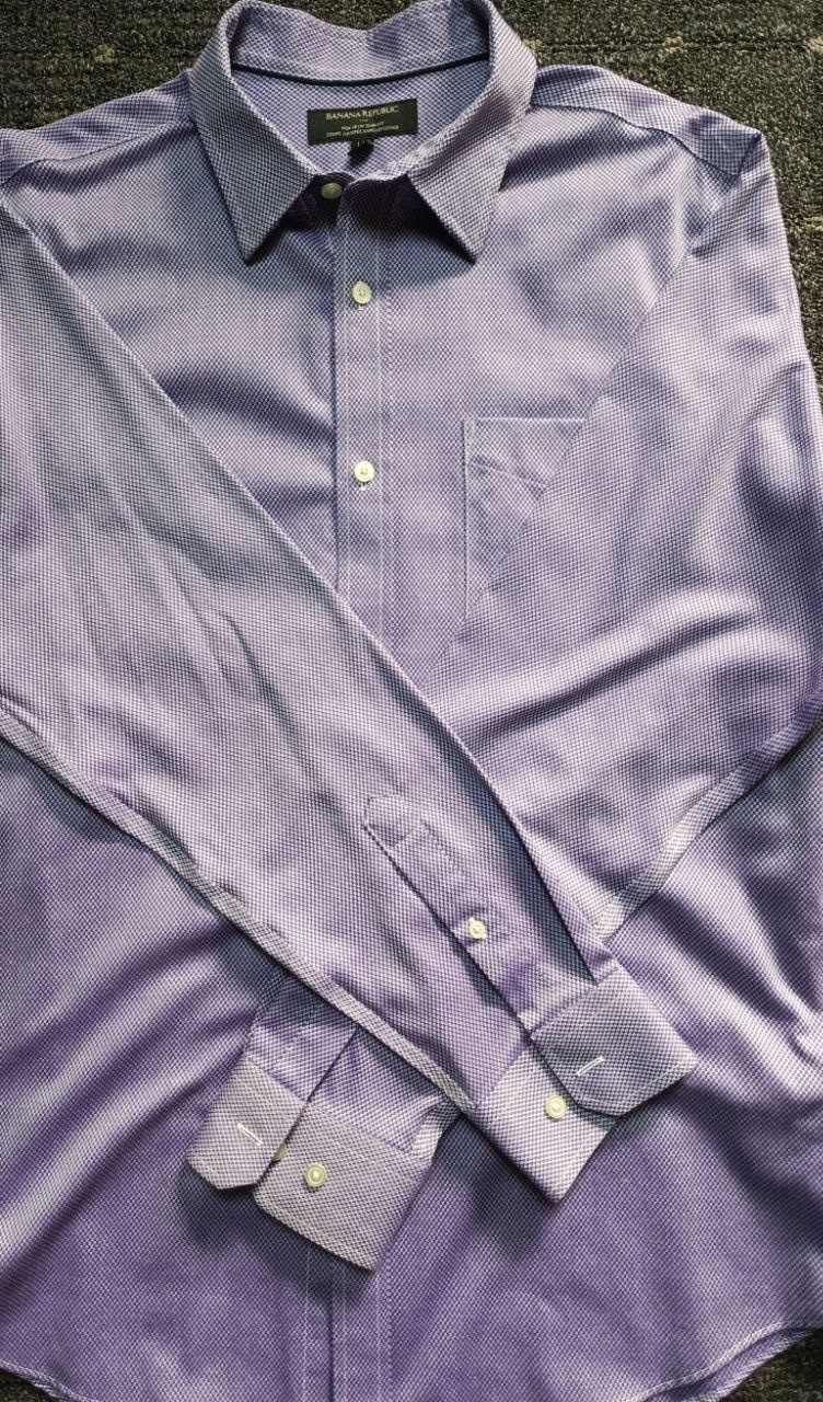 قميص رجالي أرجواني فاتح بنقشة دقيقة من Banana Republic – مقاس L (16-16½") | حالة ممتازة