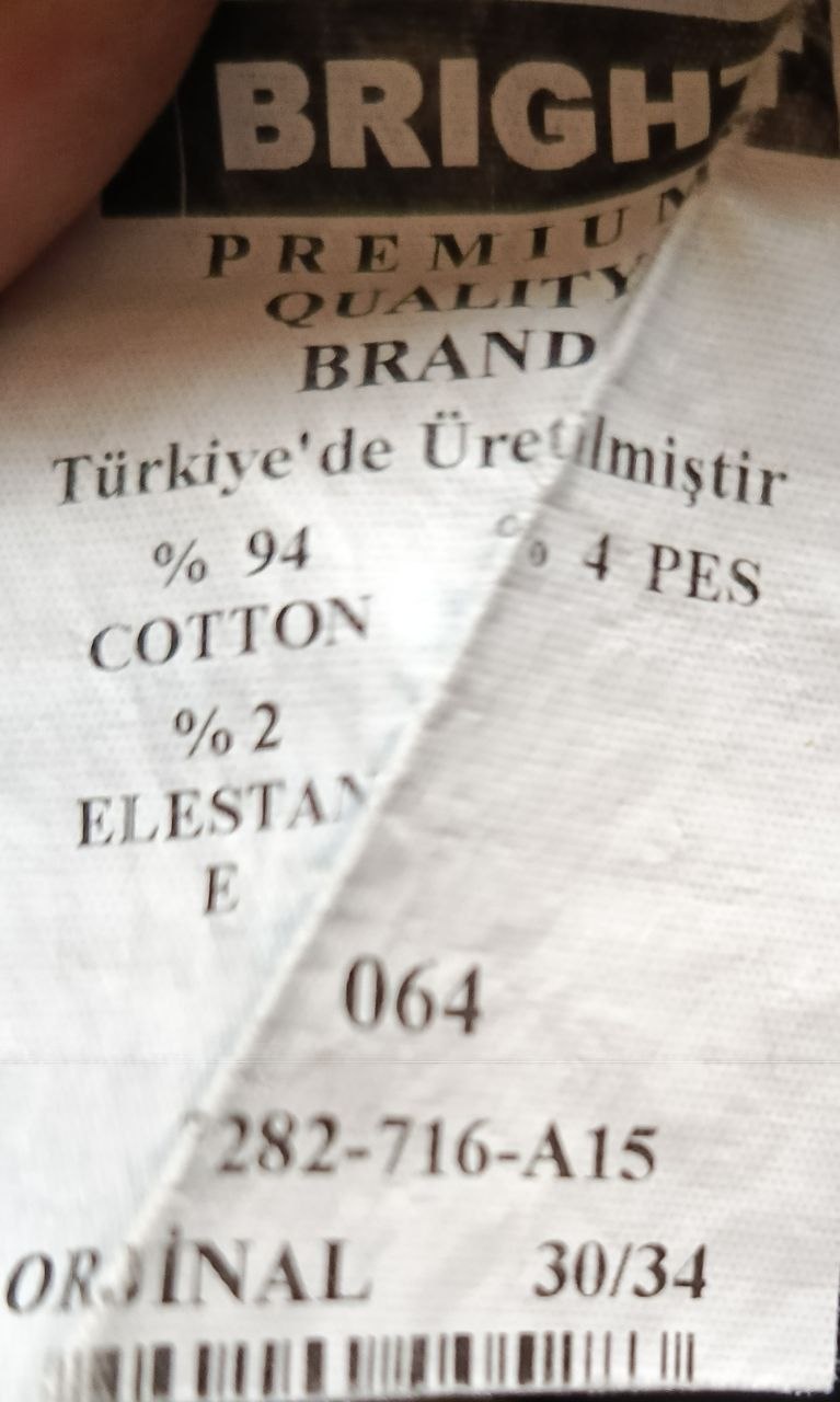 المادة: قماش متين ومريح جداً يتكون من 94% قطن و 2% إيلاستين (قابل للتمدد) و 4% بوليستر، مما يضمن راحة فائقة أثناء الحركة.