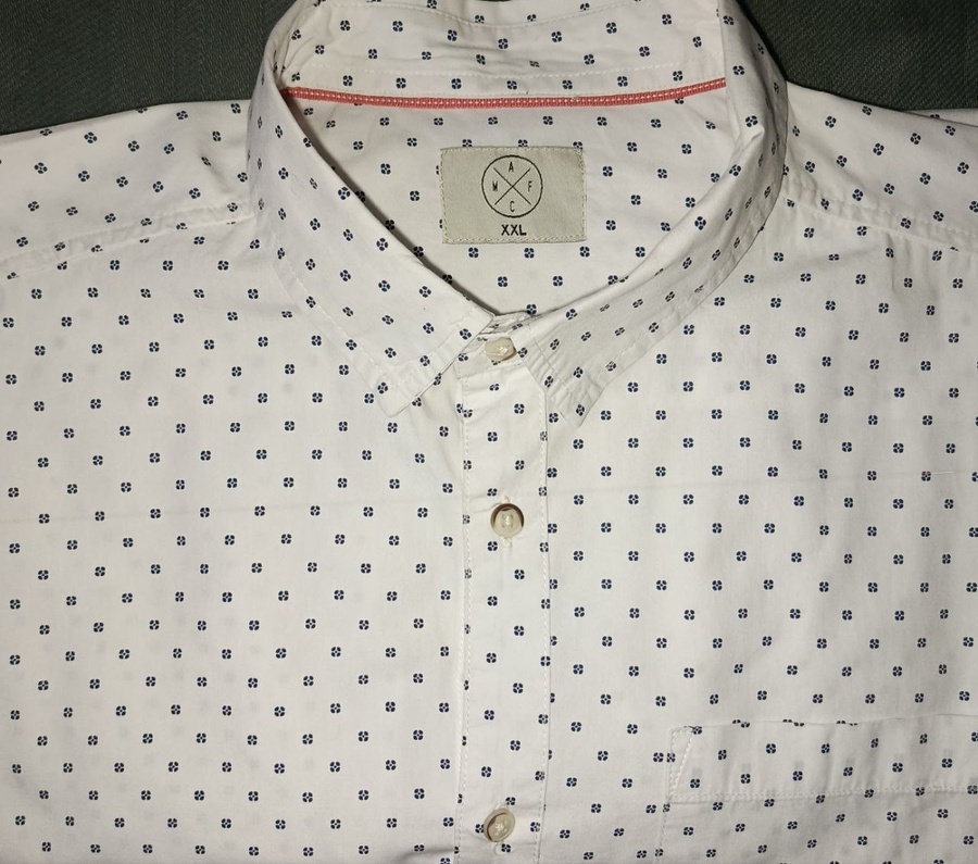 🔥 عرض خاص: قميص كاجوال أبيض بنقشة مميزة (Button-Down) - مقاس XXL - بـ 5 دينار فقط! 🔥