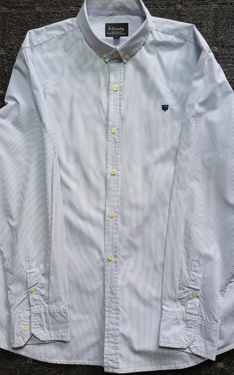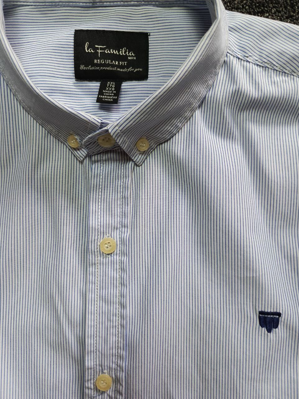 قميص رجالي أزرق فاتح بخطوط بيضاء من la Familia MAN – مقاس XXL | حالة ممتازة