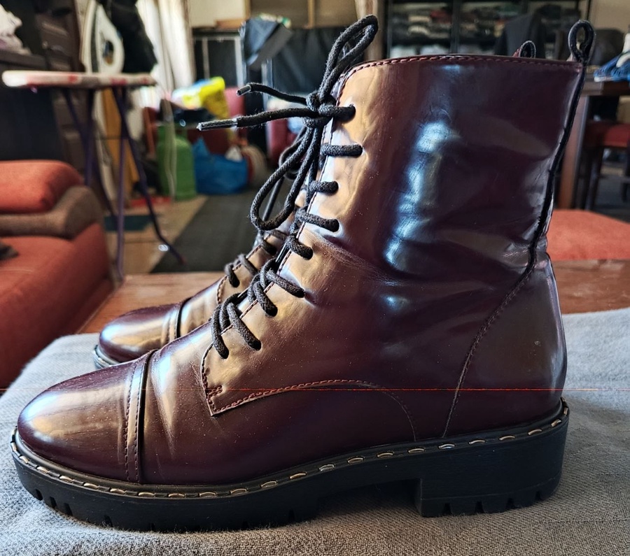 اللون: عنابي غامق لامع (Burgundy/Oxblood) يعطي مظهراً فخماً.
