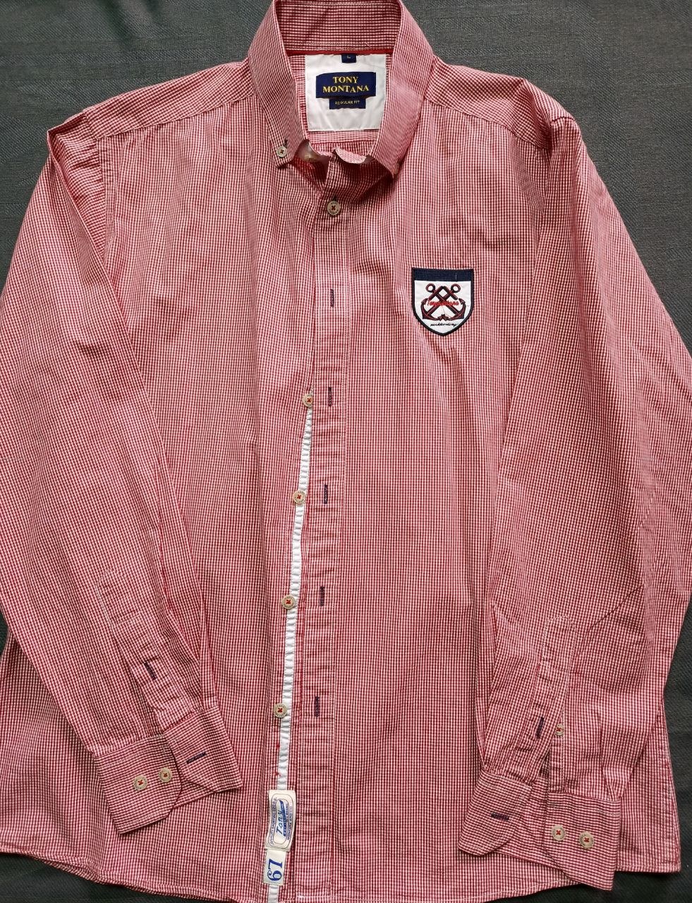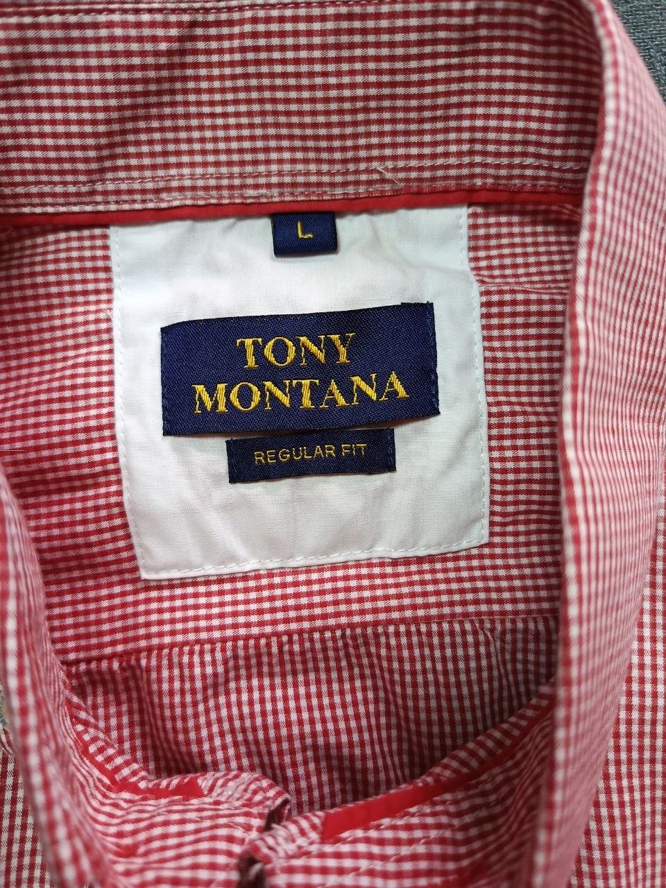 قميص رجالي أحمر بنقشة مربعات من Tony Montana – مقاس L | حالة ممتازة