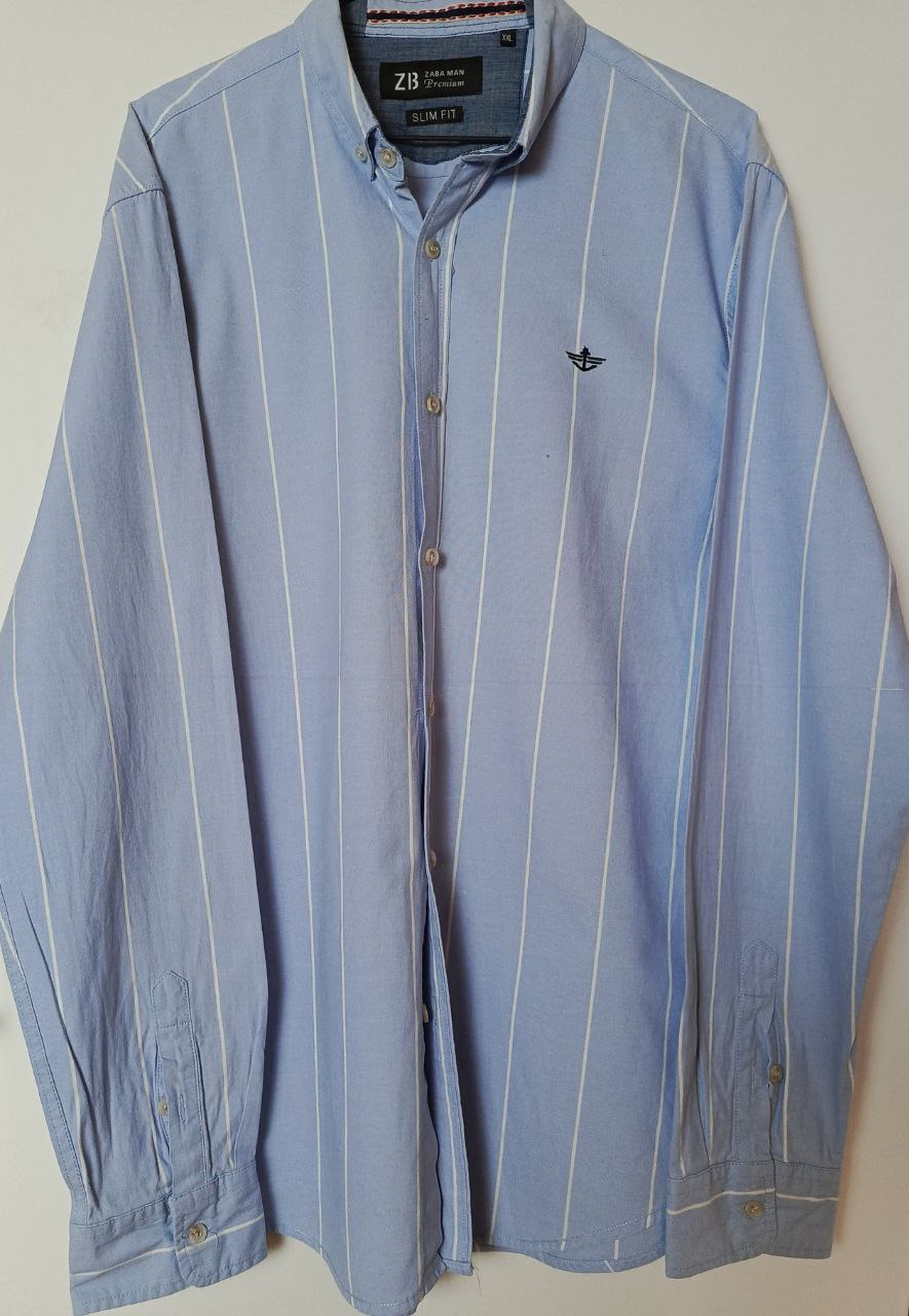 قميص رجالي من ZARA MAN Premium – أزرق فاتح بخطوط بيضاء | مقاس XXL | حالة ممتازة