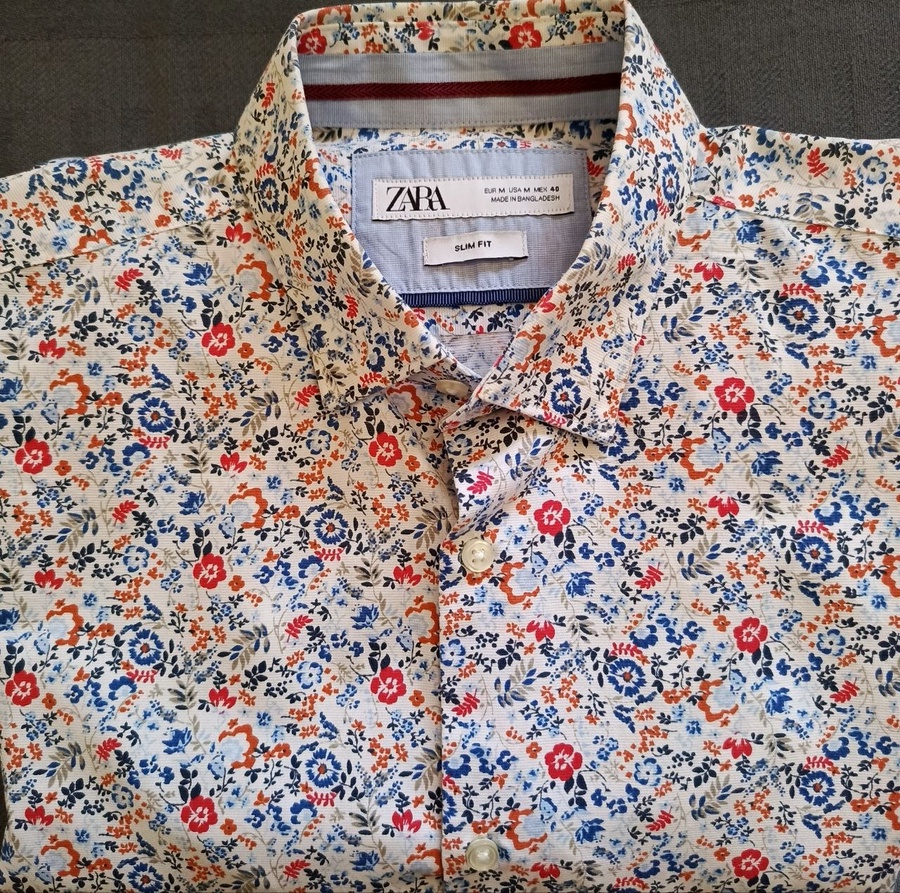 🔥 عرض خاص: قميص Zara أصلي (Slim Fit / Floral Print) - مقاس M - بـ 5 دينار فقط! 🔥