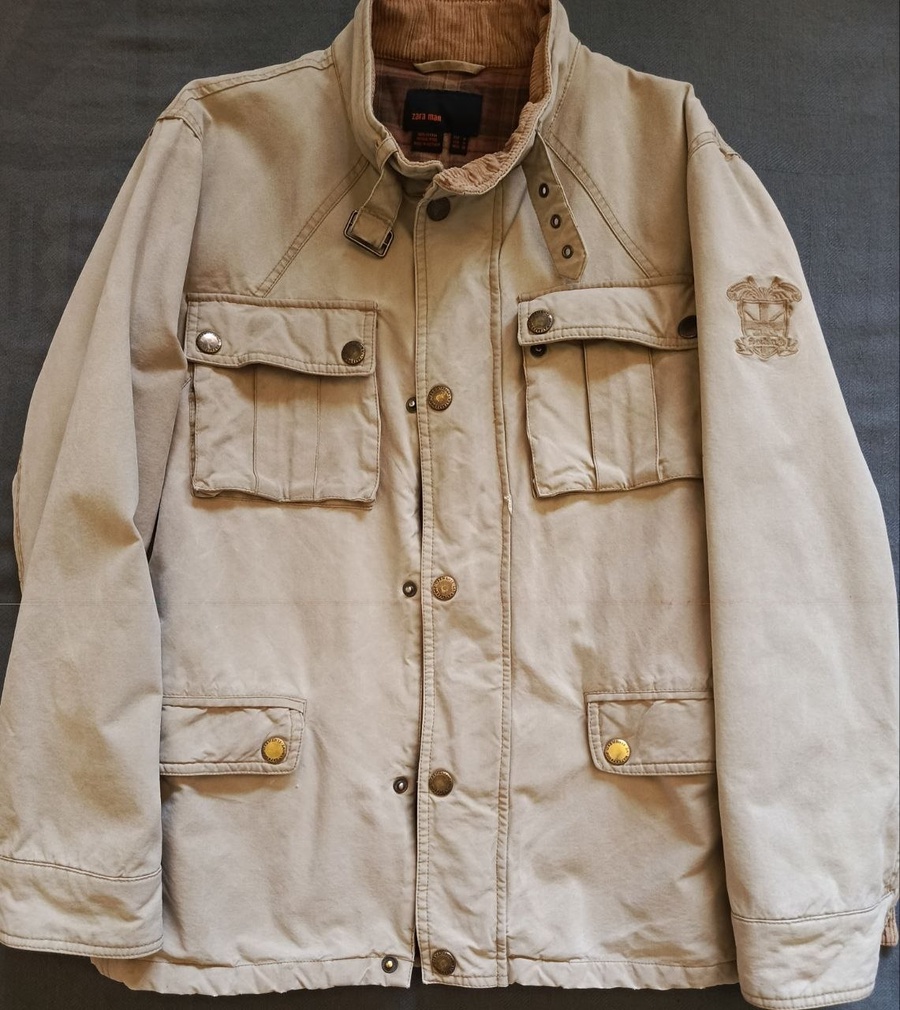 للبيع جاكيت رجالي أنيق وعملي من ماركة Zara Man الإسبانية العالمية، تصميم كلاسيكي بنمط السفاري/العسكري (Field Jacket).