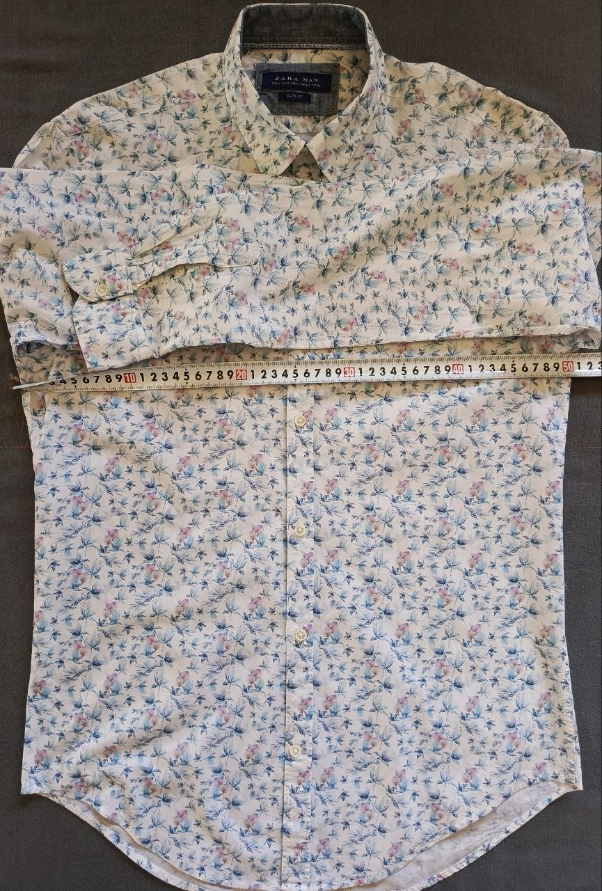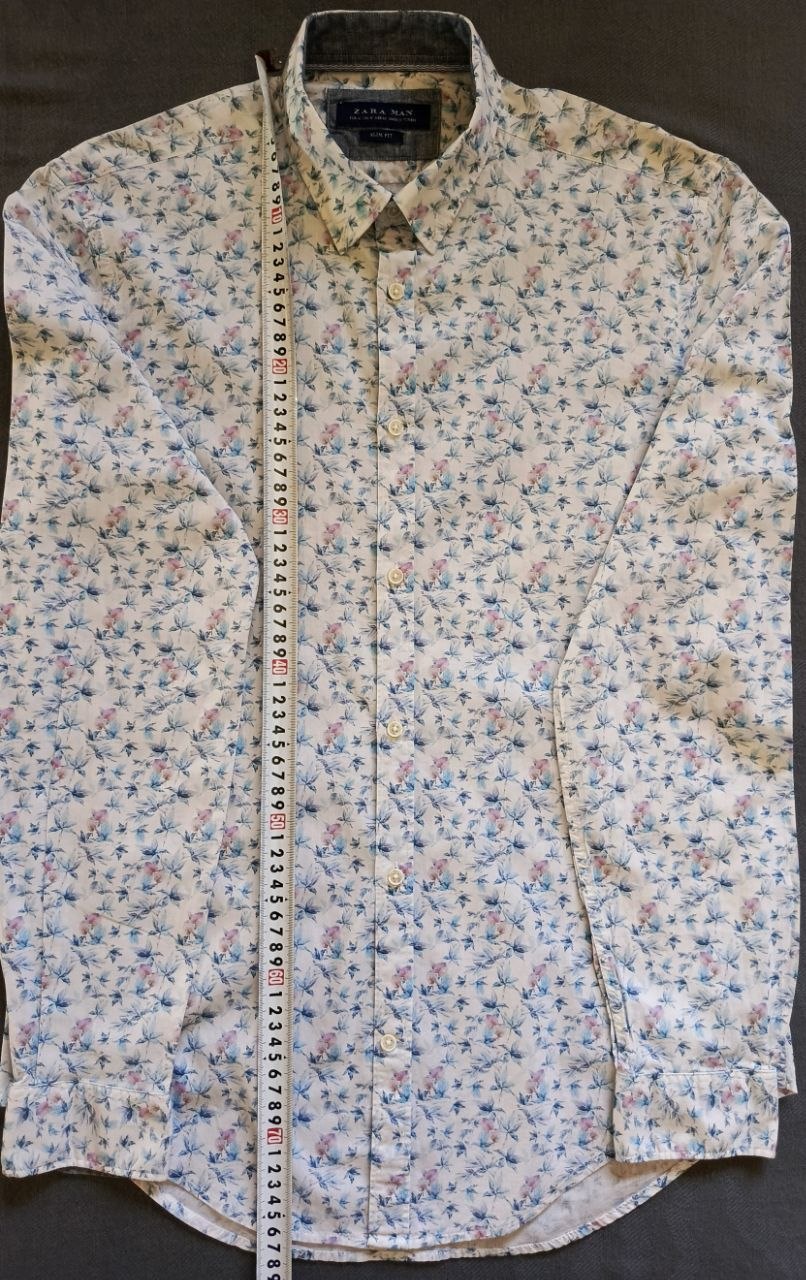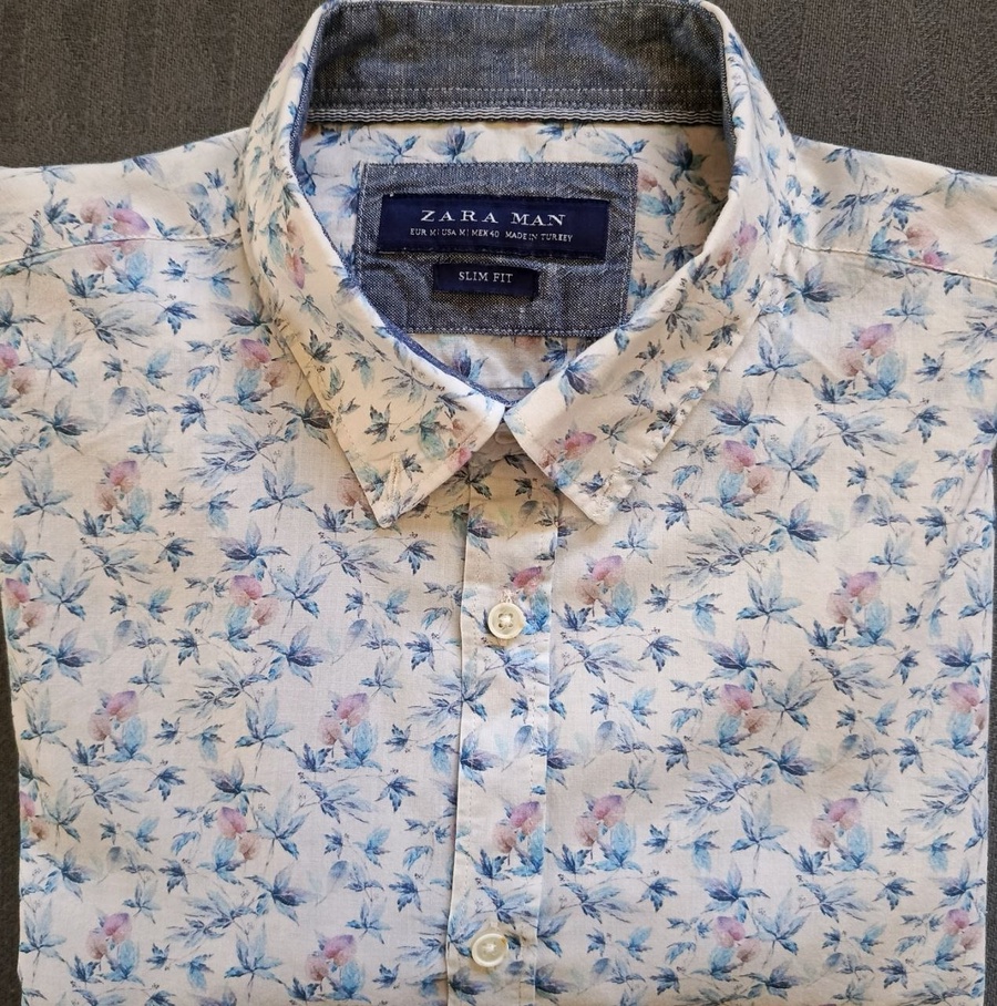 للبيع قميص رجالي أنيق وعصري من ماركة Zara Man الإسبانية العالمية، تصميم مميز بنقشة نباتية صيفية.