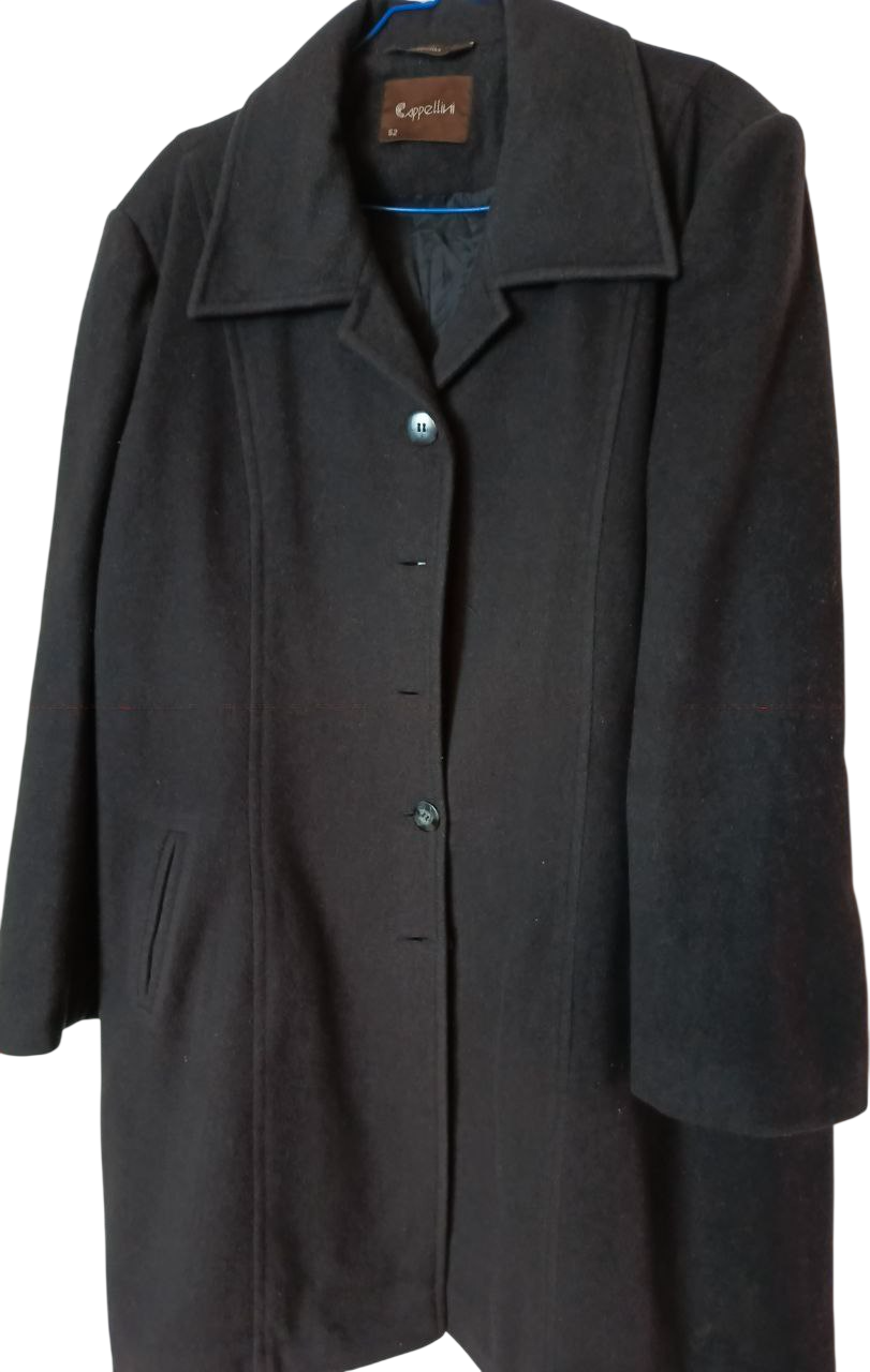 معطف نسائي طويل من Cappellini – لون أسود | مقاس 52 (أوروبي) | حالة ممتازة