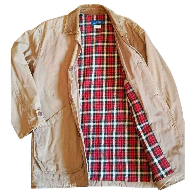 جاكيت رجالي J.Crew موديل Barn مقاس XS بحالة مستعملة تشبه الجديدة (9/10)، مناسب للإطلالات الكاجوال اليومية.